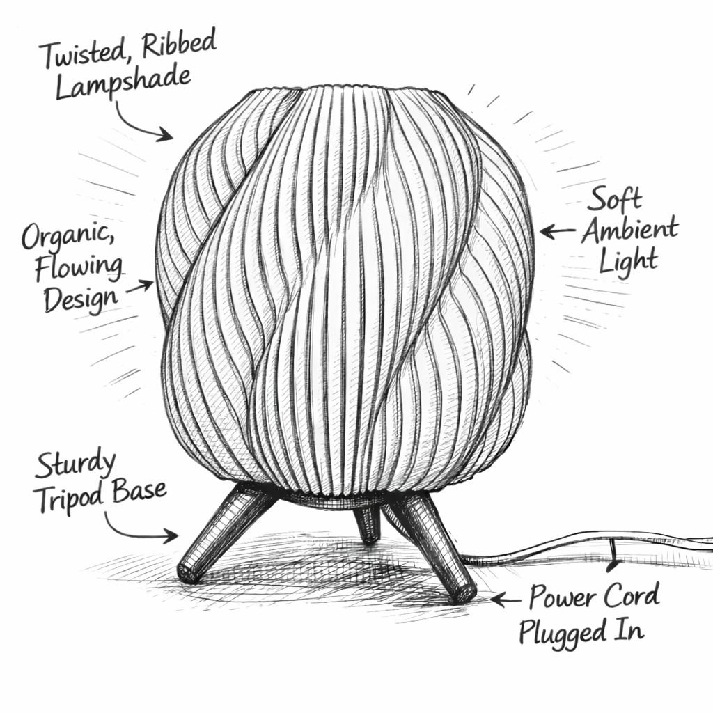 Organic, ribbed shape that diffuses light gently across the surface.