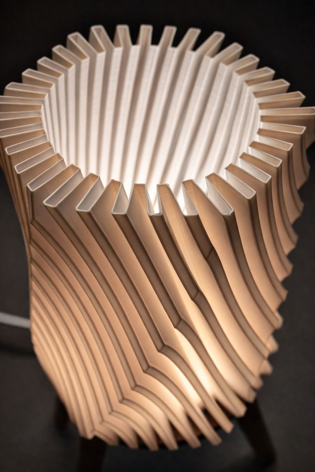 The twisted design gently diffuses light, creating a soft and inviting glow in any room.